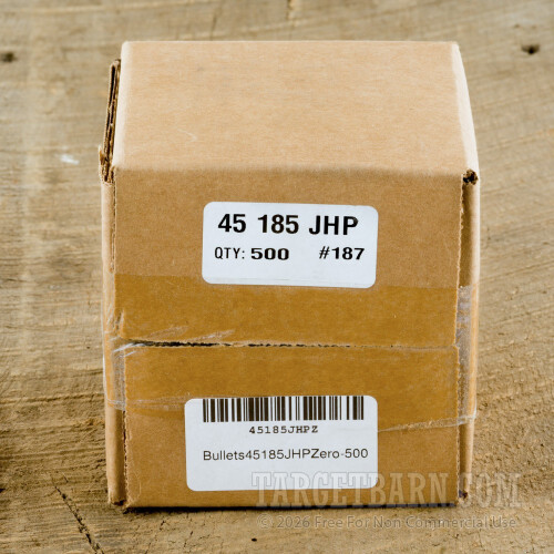 .451" Zero 45 ACP Bullets - 500 Qty - 185 Grain Jacketed Hollow-Point