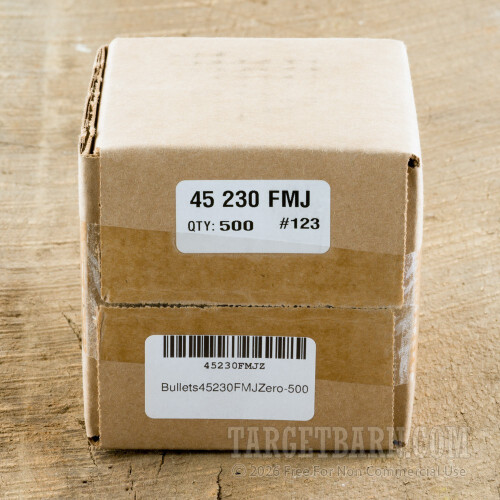 .451" Zero 45 ACP Bullets - 500 Qty - 230 Grain Full Metal Jacket