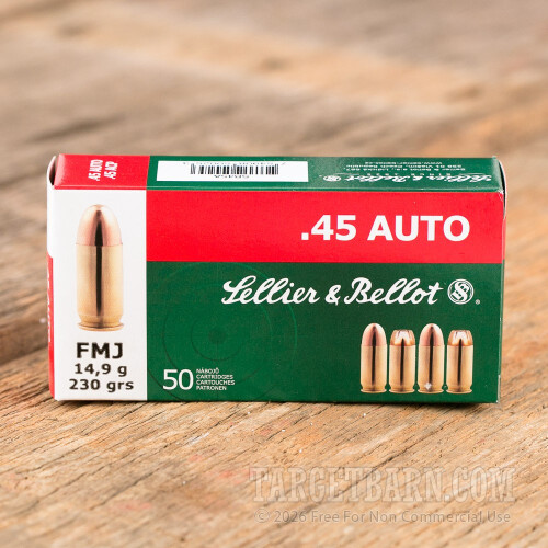 Sellier & Bellot 45 ACP Ammunition - 1000 Rounds of 230 Grain FMJ