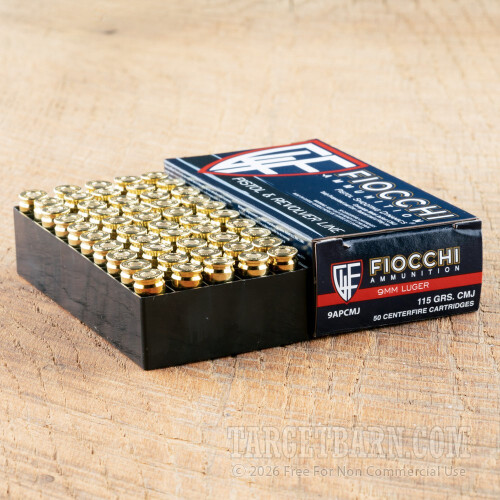 Fiocchi 9mm Luger Ammunition - 1000 Rounds of 115 Grain CMJ