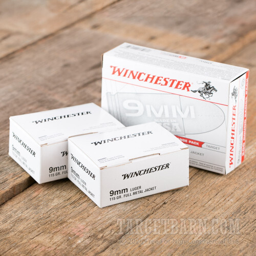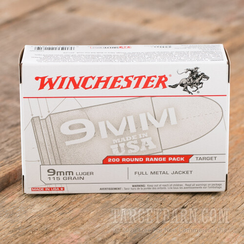 Winchester 9mm Luger Ammunition - 1000 Rounds of 115 Grain FMJ