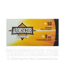 Armscor 9mm Luger Ammunition - 50 Rounds of 115 Grain FMJ