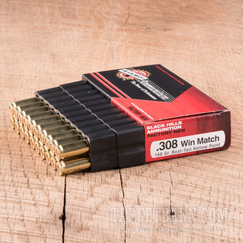 Black Hills 308 Winchester Ammunition - 20 Rounds of 168 Grain BTHP