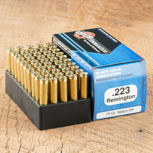 Black Hills Remanufactured 223 Remington Ammunition - 50 Rounds of 75 Grain Match HP