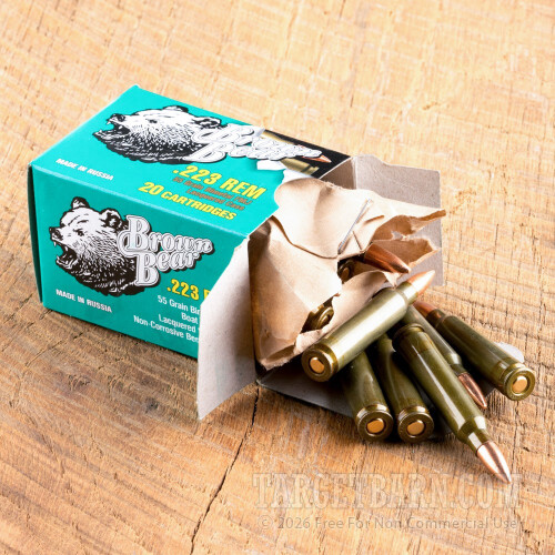 Brown Bear (Lacquered) 223 Remington Ammunition - 20 Rounds of 55 Grain FMJ