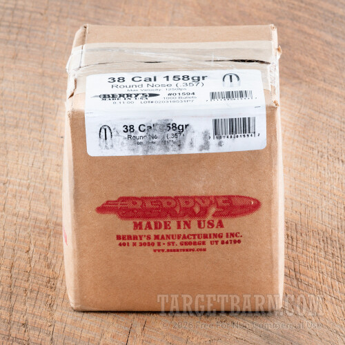 .357" Berry's .38/.357 Caliber Bullets - 1000 Qty - 158 Grain Plated Round Nose Double Struck