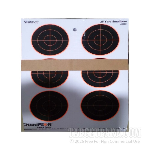 Add your review to this this VisiShot 25 Yard Smallbore Target - Six 3 Inch Bullseyes - Orange Reactive - Champion - 10 Count