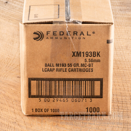 Federal 5.56x45mm Ammunition - 1000 Rounds of 55 Grain FMJBT XM193