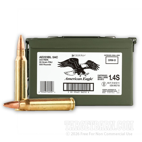 Federal American Eagle 223 Rem Ammo Can - 500 Rounds of 55 Grain FMJBT