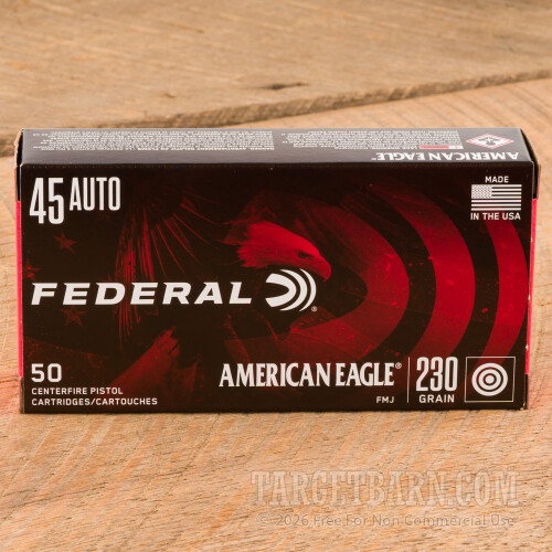 Federal American Eagle 45 ACP Ammunition - 50 Rounds of 230 Grain FMJ