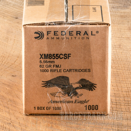 Federal American Eagle 5.56 NATO Ammunition - 1000 Rounds of 62 Grain FMJ