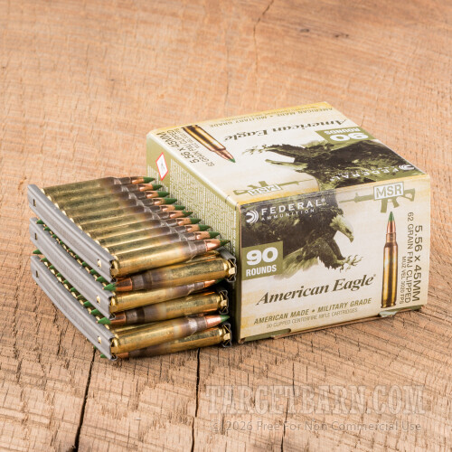 Federal American Eagle 5.56 NATO Ammunition - 90 Rounds of 62 Grain FMJ