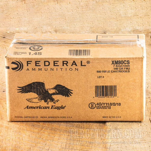 Federal American Eagle 7.62 NATO Ammunition - 500 Rounds of 149 Grain FMJ