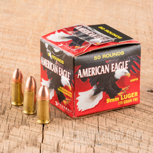Federal American Eagle 9mm Ammunition - 500 Rounds of 115 Grain FMJ