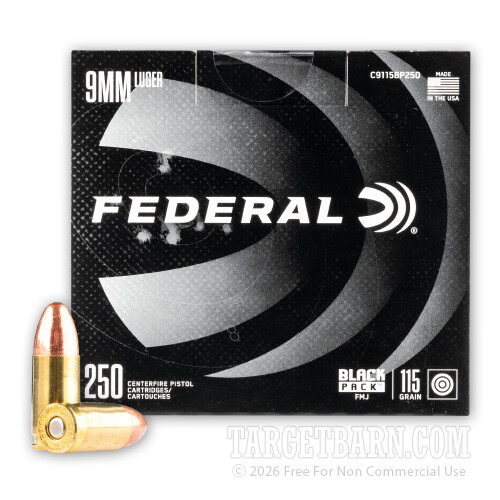 Federal Black Pack 9mm Ammunition - 1000 Rounds of 115 Grain FMJ