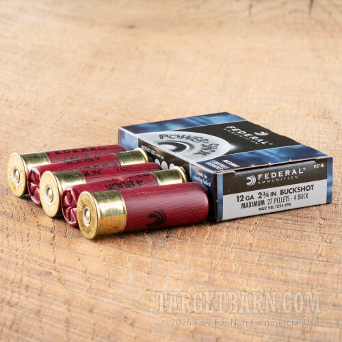 Federal Power Shok 12 Gauge Ammunition - 250 Rounds of 2-3/4" #4 Buck