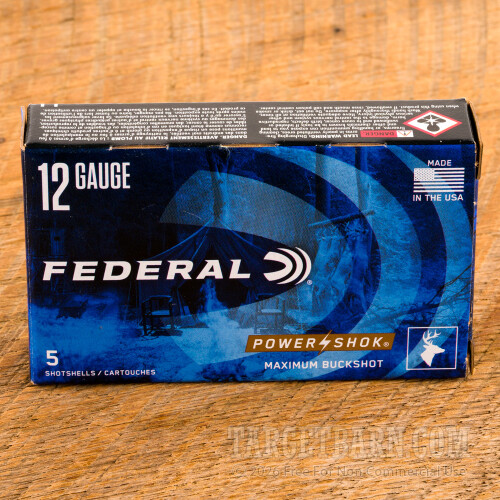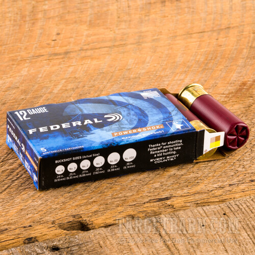 Federal Power-Shok 12 Gauge Ammunition - 5 Rounds of 2-3/4" 00 Buckshot