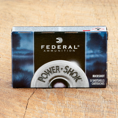 Federal Power Shok 12 Gauge Ammunition - 5 Rounds of 2-3/4" #4 Buck