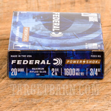 Federal Power-Shok 20 Gauge Ammunition - 250 Rounds of 2-3/4” 3/4 oz HP Rifled Slug