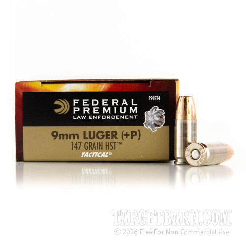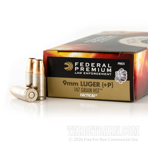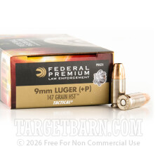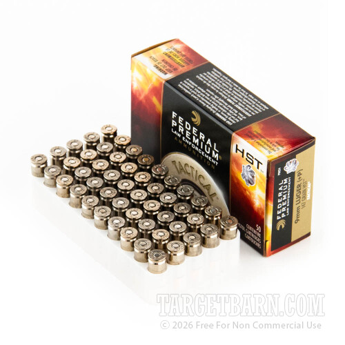 Federal Premium Law Enforcement 9mm Luger Ammunition - 50 Rounds of +P 147 Grain HST HP