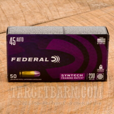Federal Syntech Training Match 45 ACP Ammunition - 50 Rounds of 230 Grain Total Synthetic Jacket