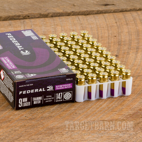 Federal Syntech Training Match 9mm Ammunition - 500 Rounds of 147 Grain Total Synthetic Jacket FN