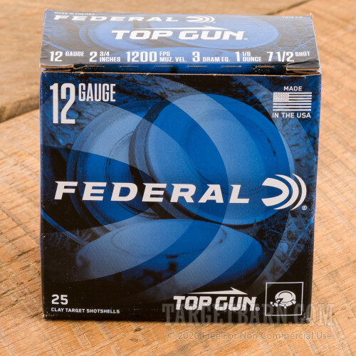 Federal Top Gun 12 Gauge Ammunition - 25 Rounds of 2-3/4” 1-1/8 oz #7.5 Shot