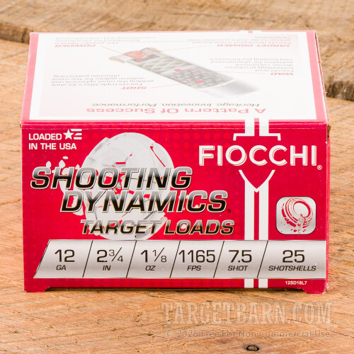 Fiocchi 12 Gauge Ammunition - 25 Rounds of 2-3/4” 1-1/8 oz #7.5 Shot