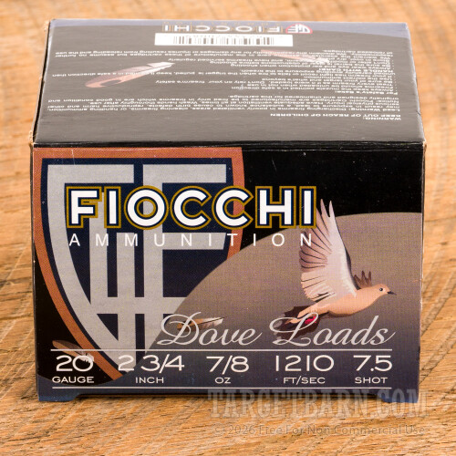Fiocchi 20 Gauge Ammunition - 250 Rounds of 2-3/4” 7/8 oz #7.5 Shot