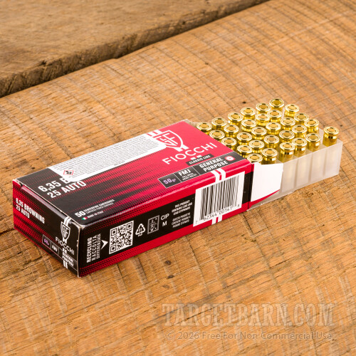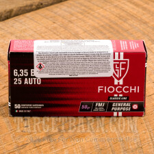 Fiocchi 25 ACP Ammunition - 1000 Rounds of 50 Grain FMJ