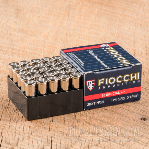 Fiocchi 38 Special Ammunition - 25 Rounds of +P 125 Grain JHP