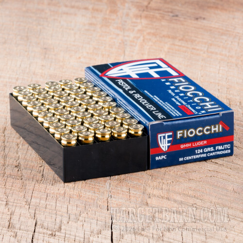 Fiocchi 9mm Luger Ammunition - 1000 Rounds of 124 Grain FMJ-TC