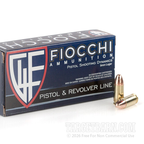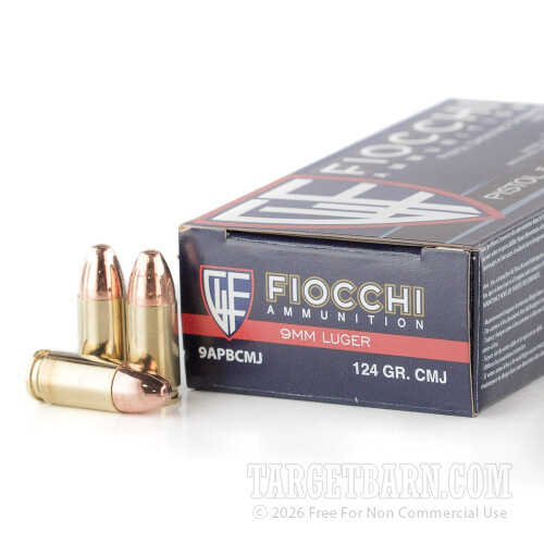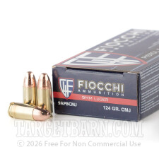 Fiocchi 9mm Luger Ammunition - 50 Rounds of 124 Grain CMJ