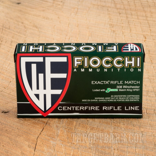 Fiocchi Exacta Match 308 Winchester Ammunition - 20 Rounds of 175 Grain MatchKing HPBT