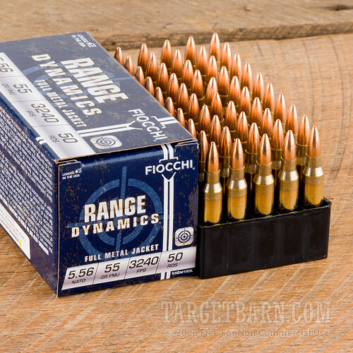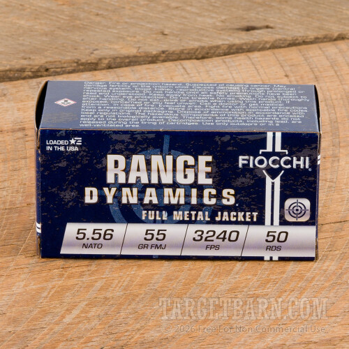 Fiocchi Range Dynamics 5.56x45 Ammunition - 50 Rounds of 55 Grain FMJ
