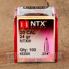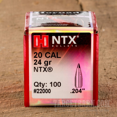 .204" Hornady 204 Caliber Bullets - 100 Qty - 24 Grain NTX Polymer-Tipped