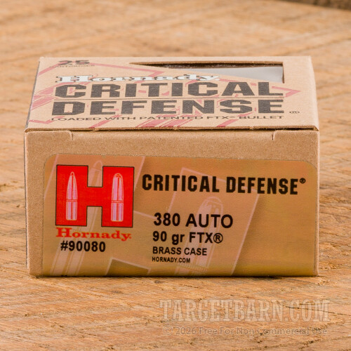 Hornady Critical Defense 380 ACP Ammunition - 25 Rounds of 90 Grain FTX