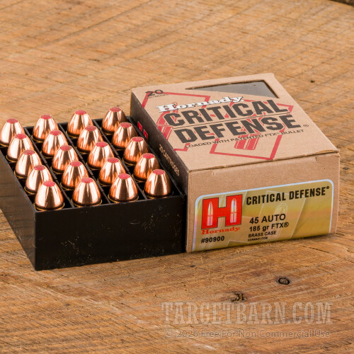 Hornady Critical Defense 45 ACP Ammunition - 20 Rounds of 165 Grain FTX HP