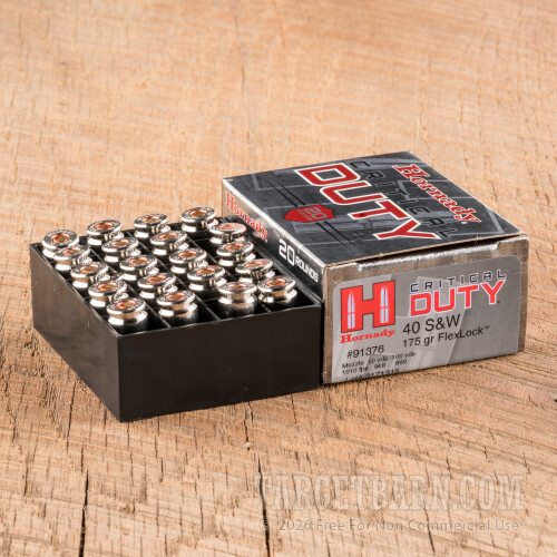 Hornady Critical Duty 40 S&W Ammunition - 200 Rounds of 175 Grain FlexLock JHP