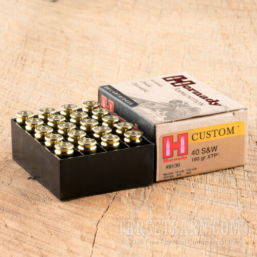 Hornady Custom 40 S&W Ammunition - 20 Rounds of 180 Grain JHP