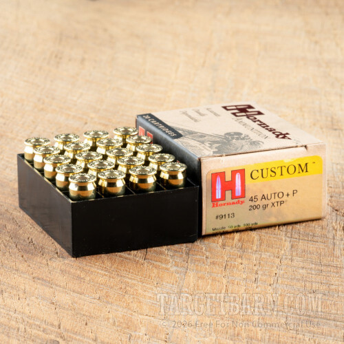 Hornady Custom 45 ACP Ammunition - 20 Rounds of +P 200 Grain XTP JHP