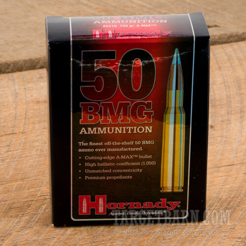Hornady Match 50 BMG Ammunition - 10 Rounds of 750 Grain A-MAX