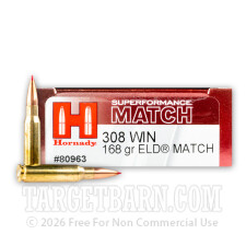 Hornady Superformance Match 308 Win Ammunition - 200 Rounds of 168 Grain ELD Match