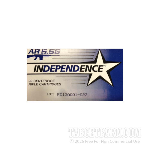 Independence 5.56 NATO Ammunition - 500 Rounds of 55 Grain FMJ-BT