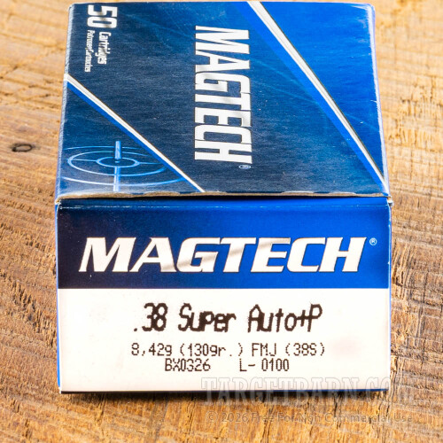 Magtech 38 Super Ammunition - 50 Rounds of +P 130 Grain FMJ