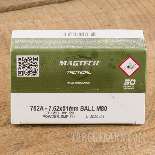 Magtech 7.62x51 Ammunition - 50 Rounds of 147 Grain FMJ M80