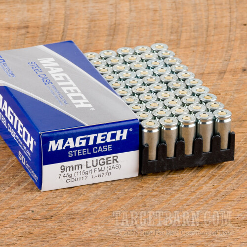 Magtech Steel 9mm Ammunition - 1000 Rounds of 115 Grain FMJ **STEEL CASES**