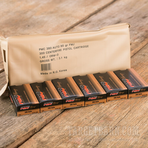 PMC Bronze 380 ACP Ammunition - 300 Rounds of 90 Grain FMJ