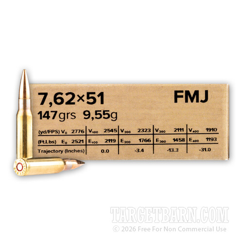 Sellier & Bellot 7.62x51 Ammunition - 600 Rounds of 147 Grain FMJ