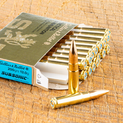 Sellier & Bellot Subsonic 300 AAC Blackout Ammunition - 500 Rounds of 200 Grain FMJ